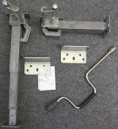 Hubstütze, klappbar, die direkt vorn mittels beigefügtem Befestigungsfuss am Fahrzeugboden (Stützhöcker) verschraubt wird, f. Fzg. mit Bodenfreiheit v. 290- 380mm, der Fuss ist justierbar und erlaubt einen Hub von 70 mm, um das Fahrzeug auszurichten.Die Montage ist denkbar einfach: Zwei mitgelieferte Chassissadapter werden einfach an vorgegebener Stelle am Fahrzeugrahmen befestigt. An diesem Adapter wird die Stütze angeschraubt. Der Abstand zum Boden kann mittels eines Stecksystems schnell und effektiv angepasst werden. Die Stützen sind schmutzgeschützt und feuerverzinkt. Im Lieferumfang sind zwei Stützen und zwei Chassisadapter.
