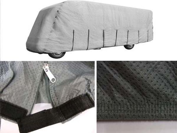 Diese Wohnmobil Schutzhülle in der Premium Ausführung schützt das hochwertige Wohnmobil vor Verschmutzungen und Schäden am Lack und Inventar (Licht, Staub und Sonnenschutz auch für die Möbel). Keine starken Verunreinigungen durch Wind, Wetter, Vögel und Pollen. Mit Reißverschlüssen zu öffnendes Teilstück, somit kann das Wohnmobil im Regelfall betreten werden, ohne die Schutzhülle komplett entfernen zu müssen. Beachten Sie auch die Detailbilder, die den Qualitätsunterschied unseres Artikels darstellen: Hochwertige Reißverschlüsse mit innenliegender Schutzfahne, die ein Scheuern des Reißverschlusses auf den Lackflächen des Wohnmobil annähernd ausschließt. Die Reißverschluss Enden haben zusätzlich einen Klettverschluss-zur Sicherung. Der umlaufende Gummizug am unteren Ende der Schutzhülle sorgt für eine passgenaue Form- und verringert ein "Flattern" erheblich. Die solide eingearbeiteten Gurtaufnahmen unterstützen den Halt und ermöglichen ein gutes Anliegen der Schutzhülle. Das Dach, wie auch die Seitenteile der Schutzhülle sind aus einem atmungsaktivem 3-lagigem Gewebe gefertigt. Die Lieferung erfolgt incl. Aufbewahrungstasche. Diese Ausführung ist für ein Wohnmobil von Länge 5,30-5,70m x Breite 2,35m x Höhe 2,70-3,30m ausgerichtet.
